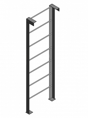 Вертикальные стойки — из стальных равнополочных горячекатаных уголков сечением 75×75×6 мм, Ступени — из круглого стального прутка ∅ 18 мм